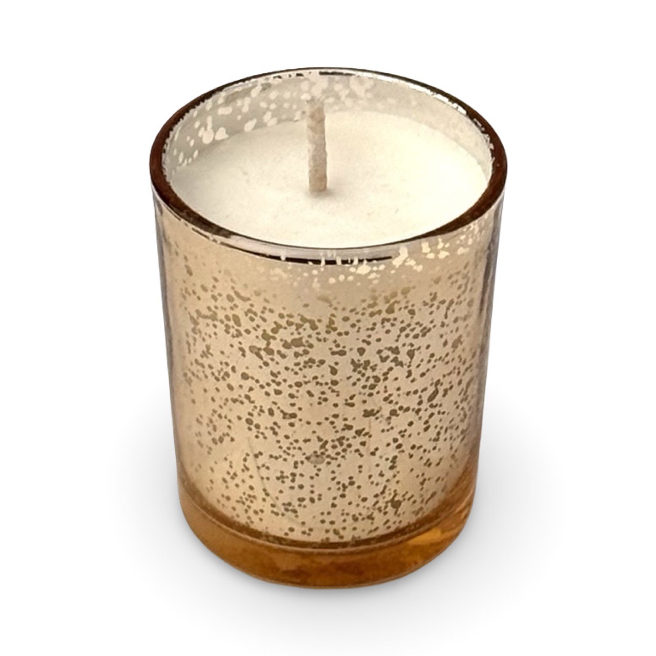 Fii gata să adaugi un accent de stil și rafinament oricărui colț al casei tale cu lumânarea parfumată „Ploaia Aurie”, 6.5×5 cm. Cu un pahar din sticlă decorat cu puncte argintii metalizate, această lumânare creează un efect spectaculos când este aprinsă – ca o ploaie de lumini într-o noapte liniștită.