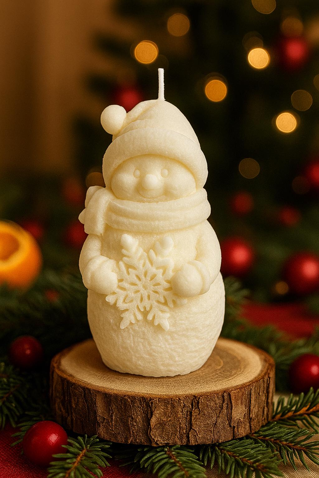 Lumânarea „Om de Zăpadă” – 10 cm este o piesă decorativă de sezon, ce îmbină spiritul festiv al iernii cu eleganța unei lumânări artizanale. Fiecare om de zăpadă este realizat manual din ceară naturală, având detalii atent sculptate: căciulă, fular și un fulg mare decorativ în mâini.